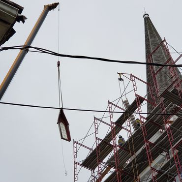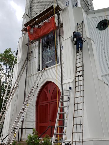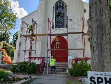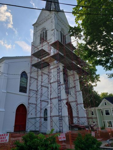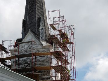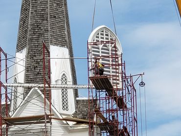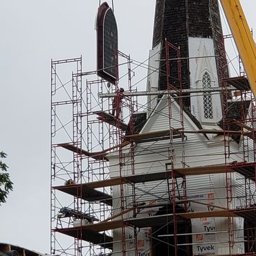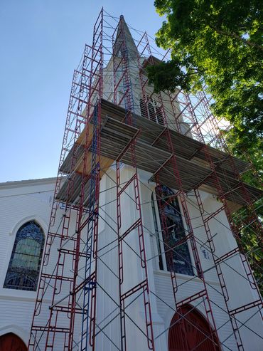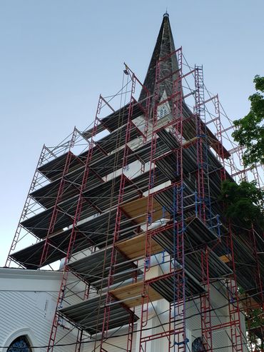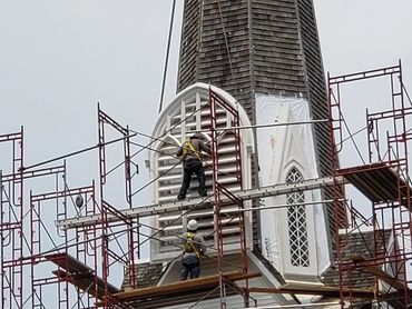 The second phase was renovating the steeple which included re-shingling the steeple and and installing a new lightning rod.